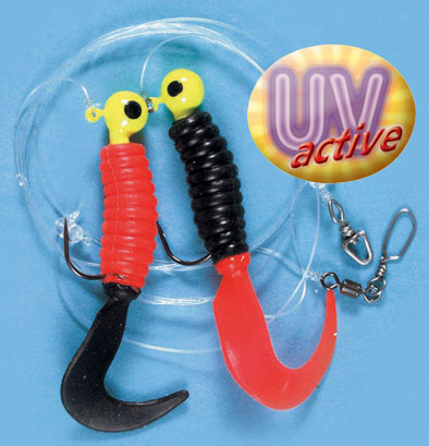 Šnúrky umožňujú nástrahe vykonávať voľný pohyb. Veľmi zaujímavou nástrahou je Quantum Envader, kde 150 g olovenej rybičky je doplnené gumenou chobotnicou opäť zavesenej na splietanej šnúre, ktorá umožňuje prirodzený pohyb nástrahy pri práci s udicou.