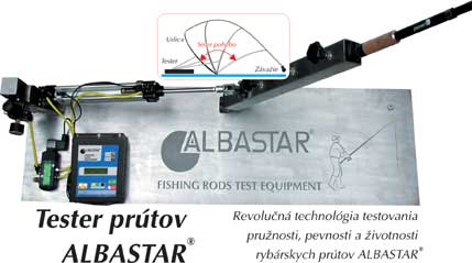 - Momentálne prebieha test prívlačových prútov ALBASTAR, modelový rad Blue Gentleman. V čase uzávierky tohto čísla prút absolvoval viac ako 50 000 cyklov, bez viditeľného poškodenia a opotrebenia. Nasledujúce testy budú na kaprových špeciáloch od ALBASTAR-u a univerzálnych teleskopických prútoch. Len pre ozrejmenie: 1 cyklus sa rovná 1 zásek s následným zdolávaním ryby, pričom čas zdolávania je nastaviteľný..