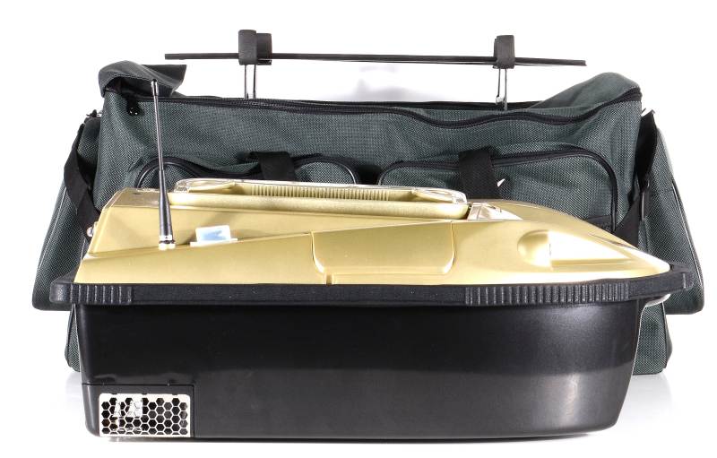 predný pohlad na konstrukciu ktorá je v taske a lodka na nej