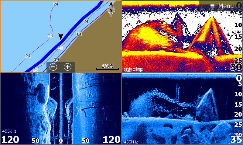 Najpokročilejšia fishfinder technológia. Zobrazenie CHIRP sonarovou technológiou a technológiou StructureScan® HD v rovnakom čase pre čo najlepšie zobrazenie rýb a štruktúry dna či už pod loďou, alebo po jej boku.